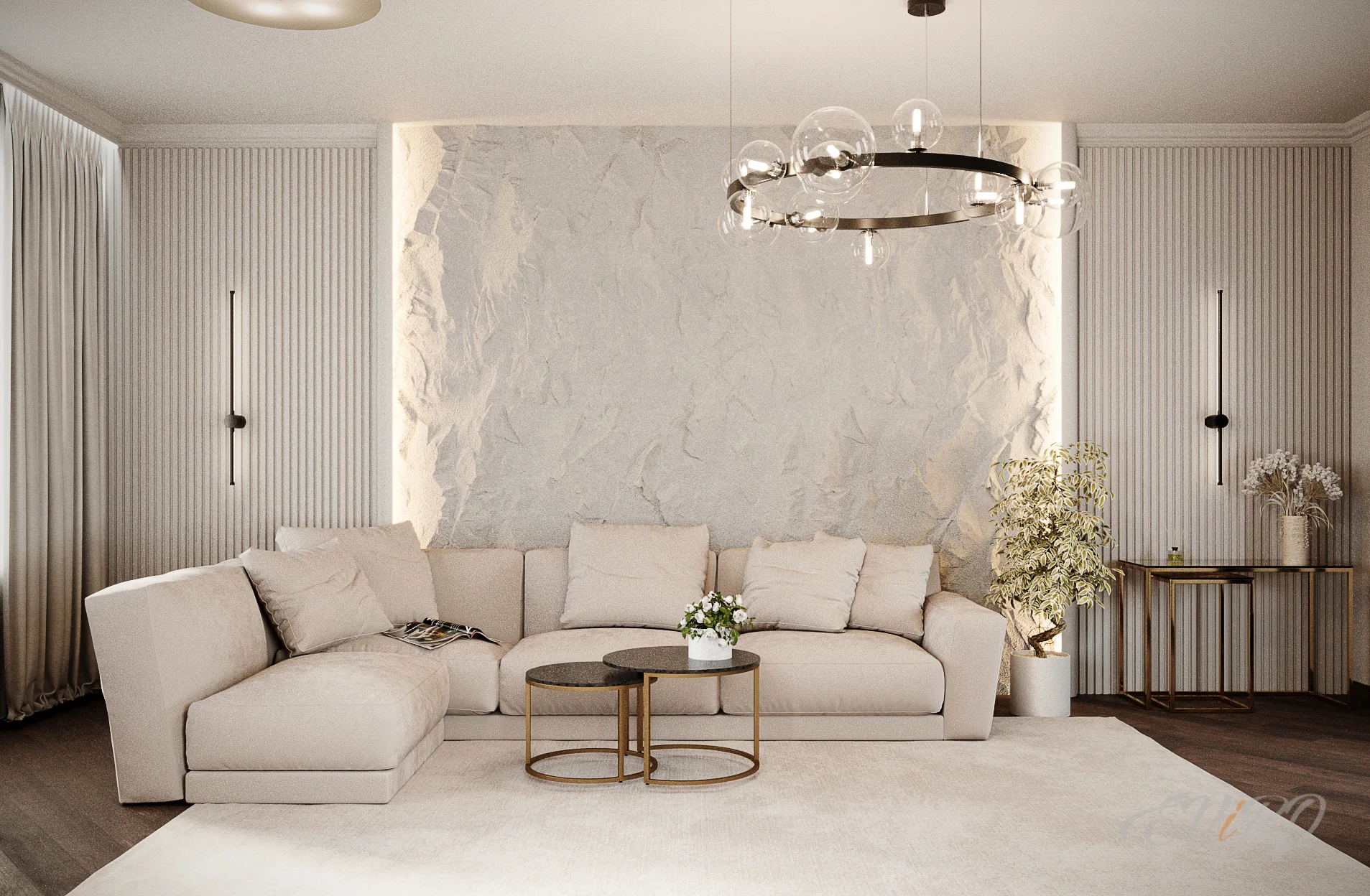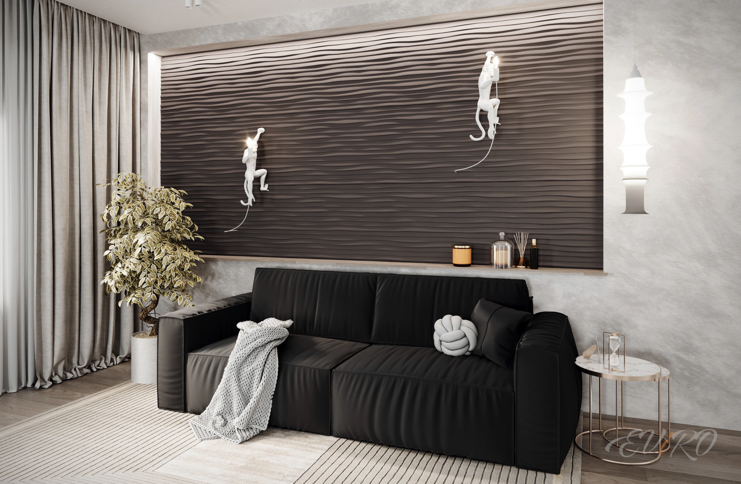 Вариант 2. Оформление зоны гостиной 3D панелями
